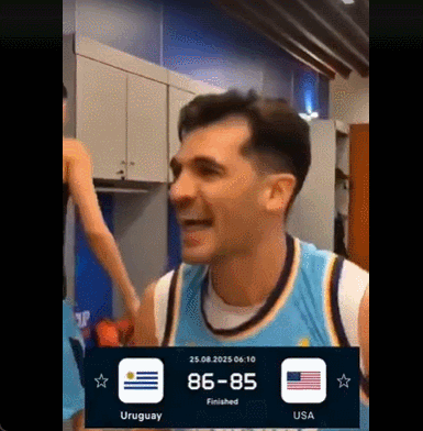 击败美国男篮的乌拉圭赛后更衣室集体陷入疯狂,全员兴高采烈如同拿下了奥运会金牌。